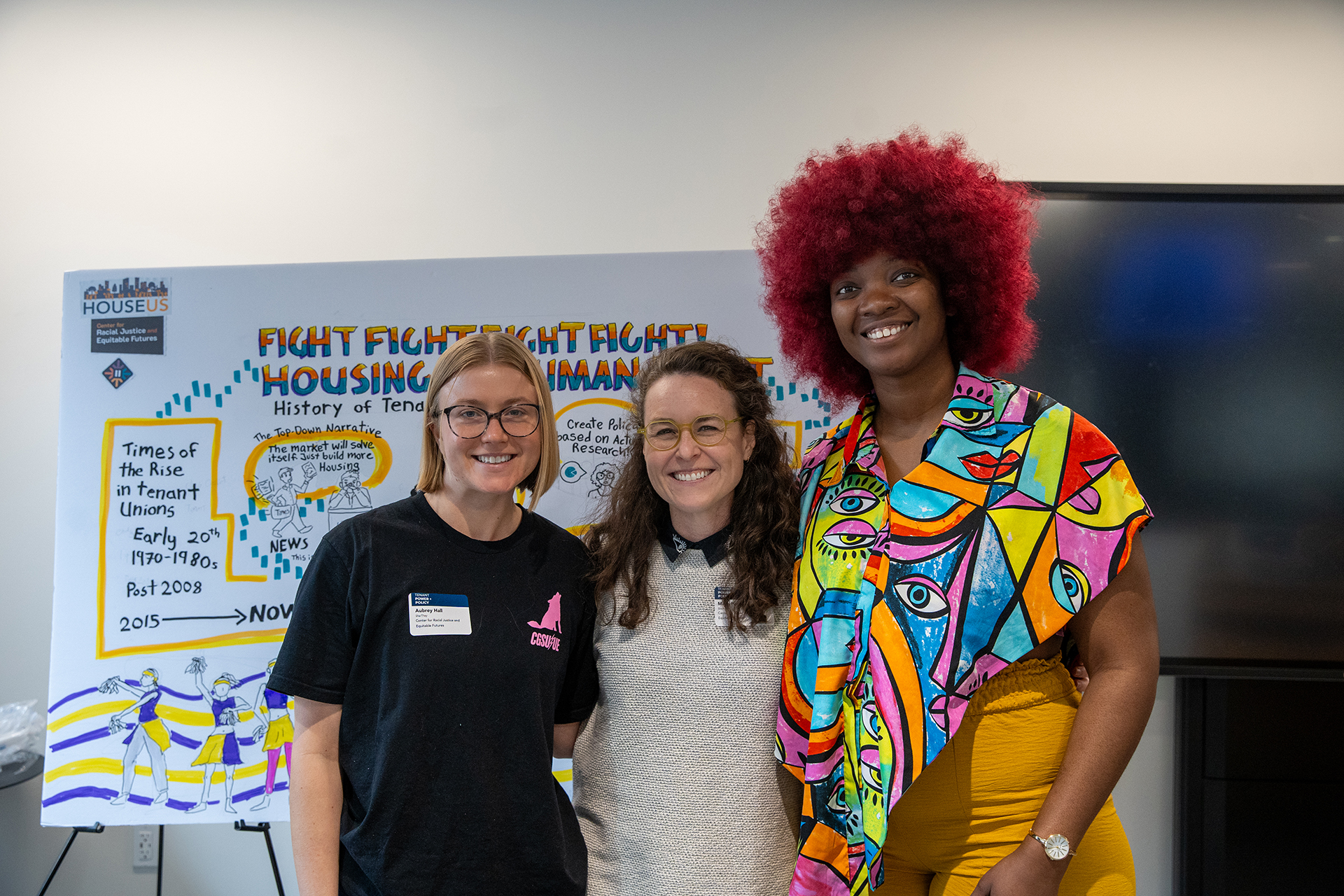 Taking a step back to look at the big picture, organizers, researchers, and policy analysts also fruitfully discussed the need for a full-scale economic restructuring to tackle the broader issue of affordability and inequality. These discussions highlighted the connections between troublingly common day-to-day struggles (e.g., predatory advertising, junk fees, mounting debt) and the wider political economy of the housing system. One policy analyst trenchantly observed that “giving people access to a racist housing system is not justice.” As long as we can still find property cases involving enslaved human beings cited as precedent today, we must continue dreaming of something better. Forging a future where housing is no longer used as a weapon that perpetuates injustice and stokes inequality will be difficult. It will require us to find solidarity despite difference, but it will ultimately benefit us all. If we want to build a more just world, we must work alongside our neighbors to exercise transformative power at the local, state, and federal levels.